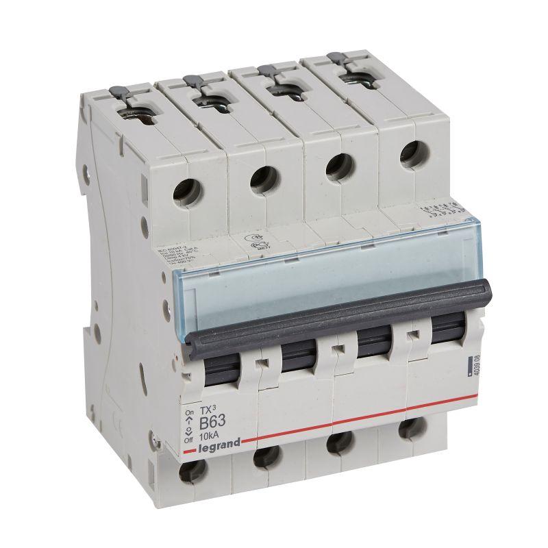 403908 | Выключатель автоматический модульный 4п B 63А 10кА TX3 6000 4мод. 400В Leg