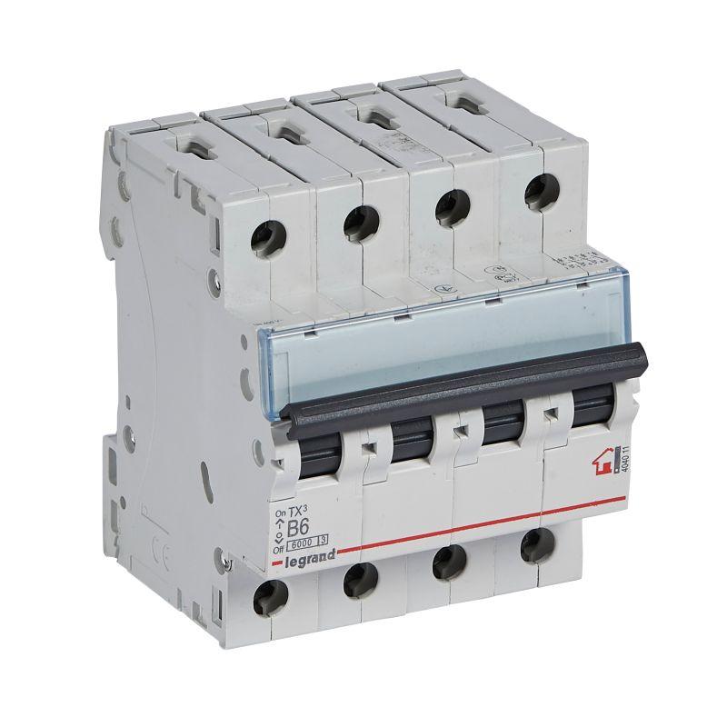 404011 | Выключатель автоматический модульный 4п B 6А 6кА TX3 6000 4мод. 400В Leg