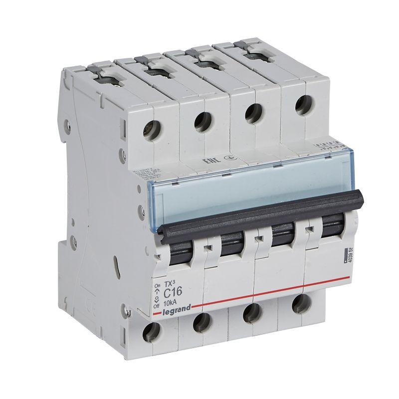 403958 | Выключатель автоматический модульный 4п C 16А 10кА TX3 6000 4мод. 400В Leg