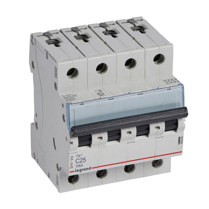403960 | Выключатель автоматический модульный 4п C 25А 10кА TX3 6000 4мод. 400В Leg