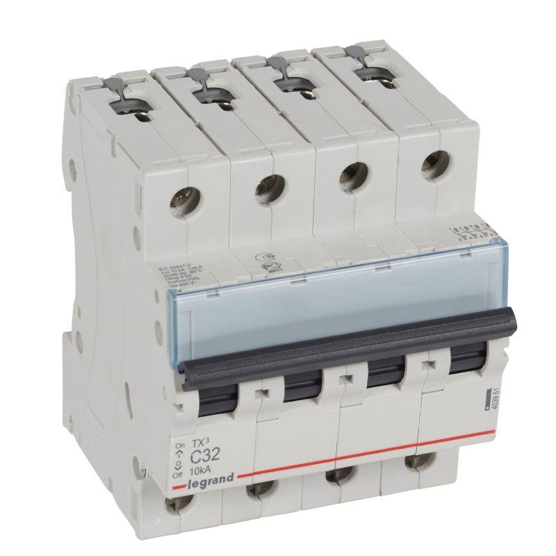 403961 | Выключатель автоматический модульный 4п C 32А 10кА TX3 6000 4мод. 400В Leg