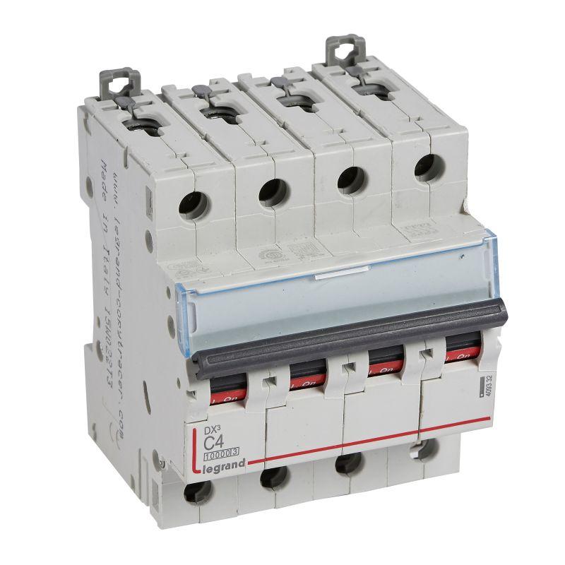 409332 | Выключатель автоматический модульный 4п C 4А 16кА DX3 10000 4мод. 400В Leg