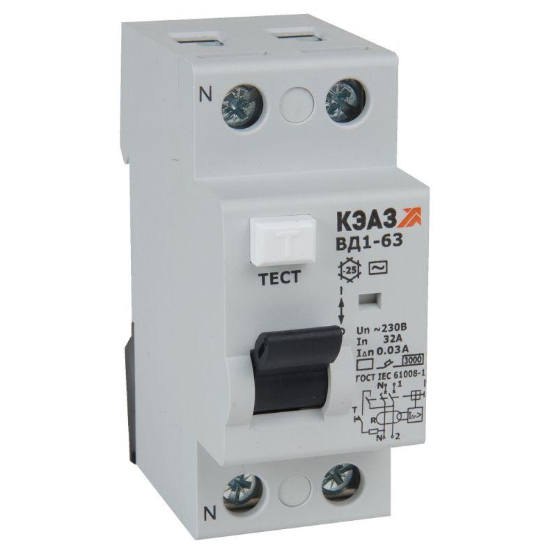 221924 | Выключатель дифференциального тока (УЗО) 2п 100А 300мА тип AC ВД1-63 24100 УХЛ4 КЭАЗ