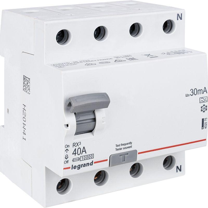 402075 | Выключатель дифференциального тока (УЗО) 4п 40А 30мА тип A RX3 Leg