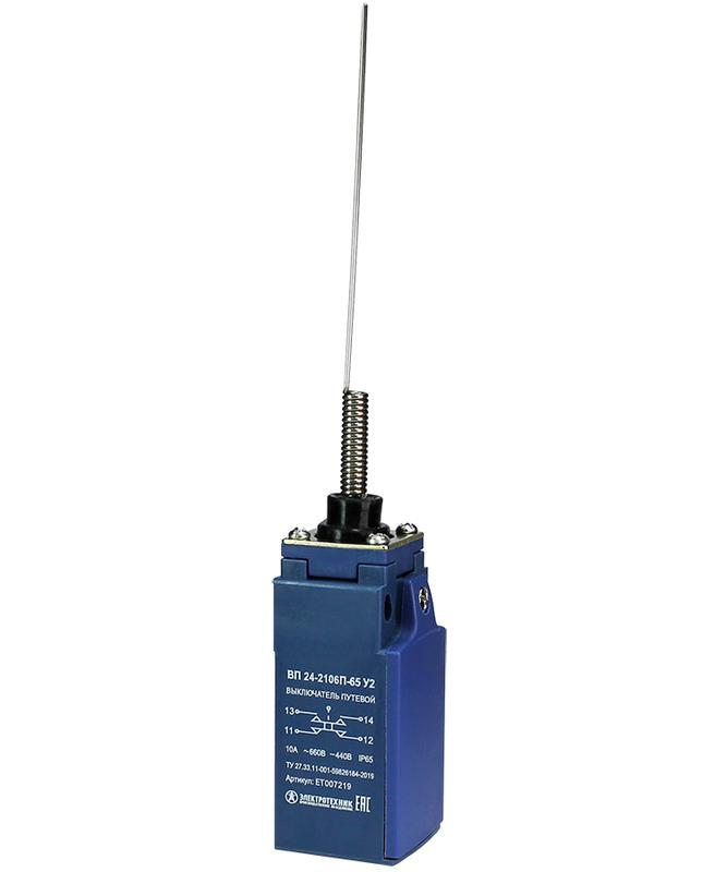 ET007219 | Выключатель путевой ВП 24-2106П-65 У2 рычаг пружинный "кошачий ус" 1з+1р безинерционный 20мм без сальника 3А IP65 Электротехник