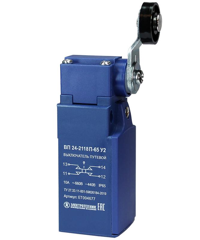 ET004677 | Выключатель путевой ВП 24-2118П-65 У2 рычаг с пластик. роликом 1з+1р безинерционный 20мм без сальника 3А IP65 Электротехник