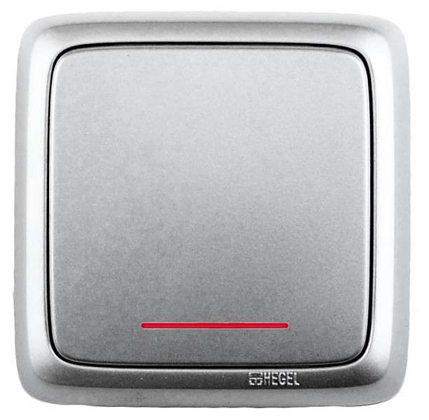 Выключатель 1-кл. ОП Альфа 10А IP20 250В с индикацией с монтаж. пластиной серебр. HEGEL ВА10-116-06