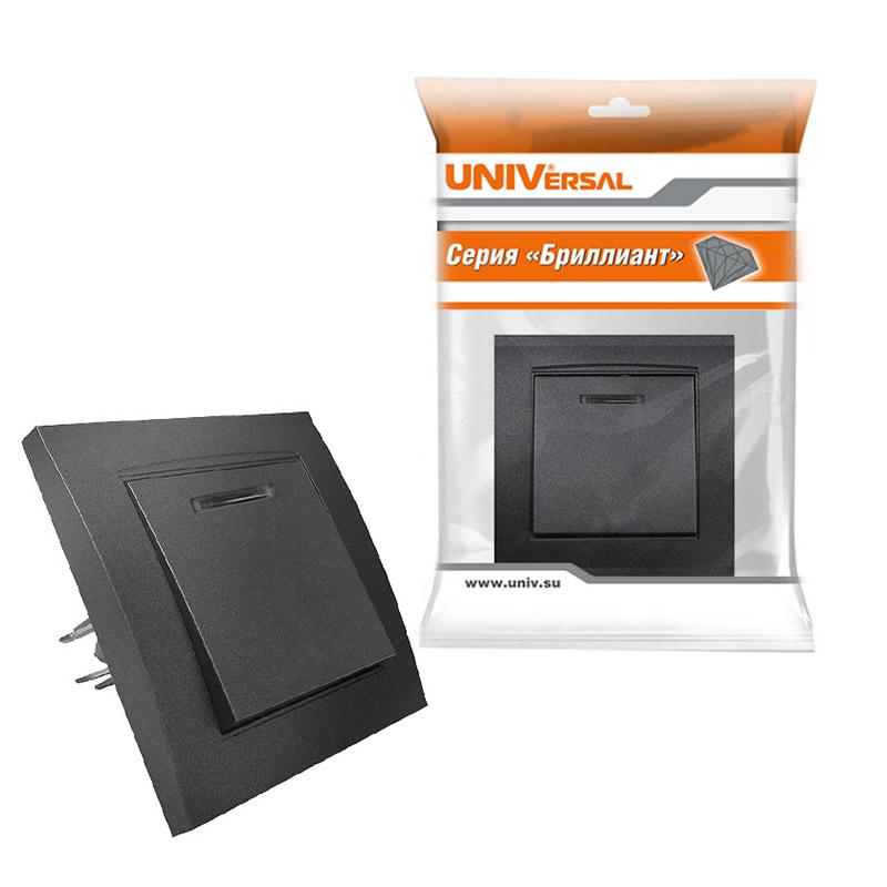 Выключатель 1-кл. СП Бриллиант 10А IP20 с подсветкой в сборе графит Universal 7947397-Gr