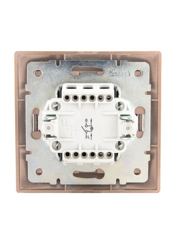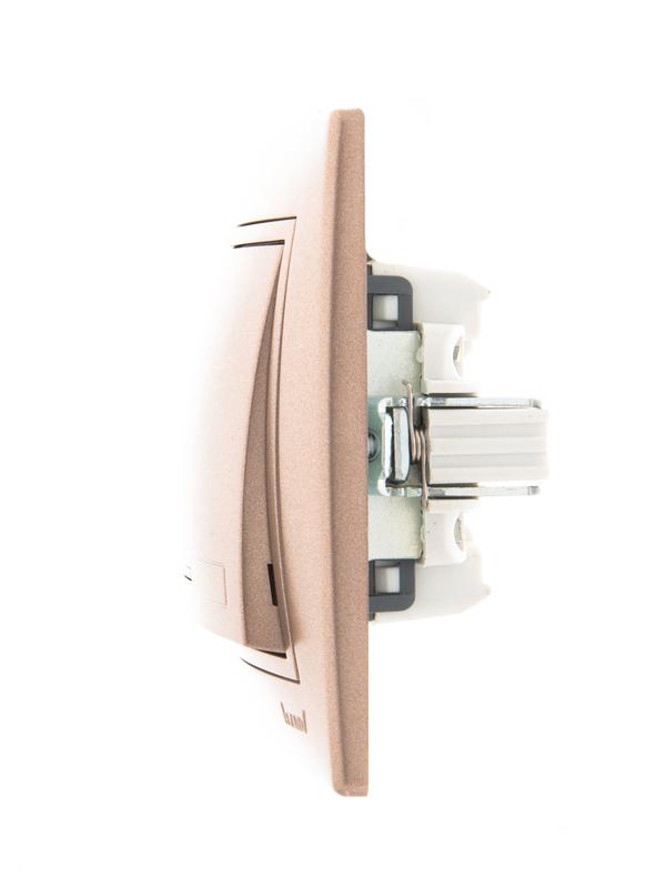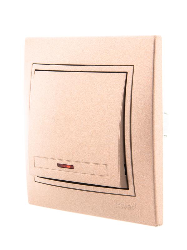 701-3131-111 | Выключатель 1-кл. СП Mira 10А IP20 с подсветкой со вставкой свет. корич. перламутр. LEZARD