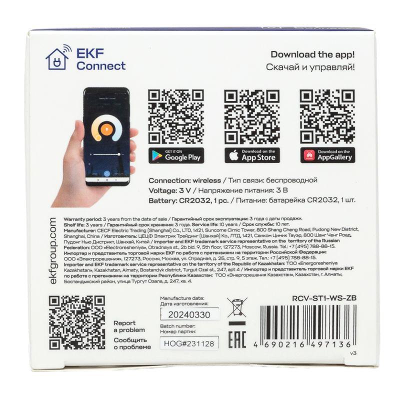 RCV-ST1-WS-ZB | Выключатель 1-кл. Стокгольм Умный беспроводной бел. Zigbee Сonnect EKF