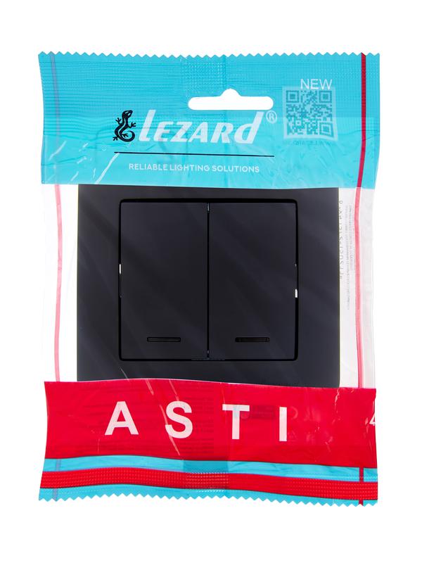 7081-4242-112 | Выключатель 2-кл. 1п СП ASTI 10А IP20 с подсветкой в сборе черн. бархат LEZARD