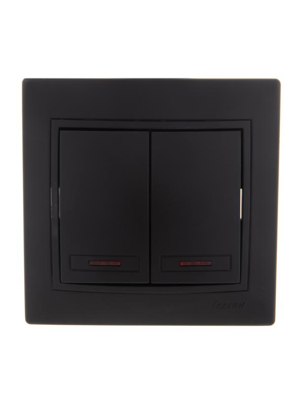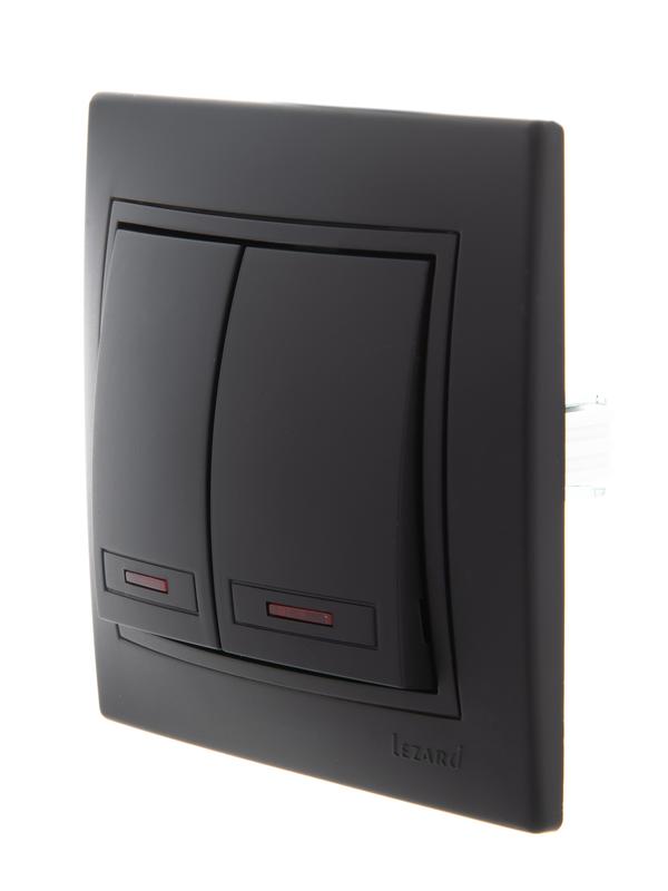 701-4242-112 | Выключатель 2-кл. 1п СП Mira 10А IP20 с подсветкой со вставкой черн. бархат LEZARD