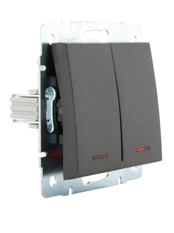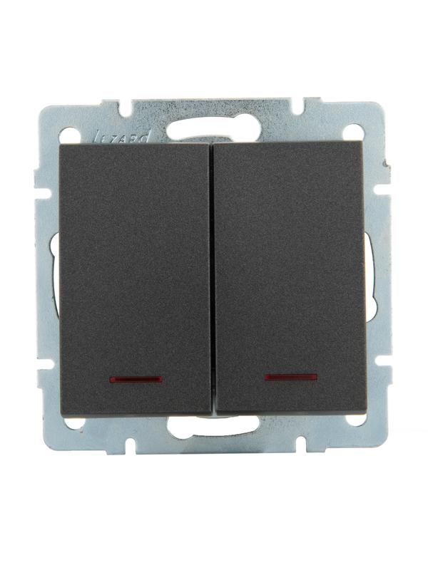 703-4188-112 | Выключатель 2-кл. Rain с подсветкой механизм матов. черн. графит LEZARD