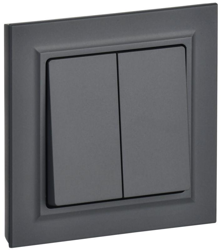 BR-V20-0-10-K53-F | Выключатель 2-кл. СП BRITE ВСР10-2-0-БрГ 10А в сборе графит IEK