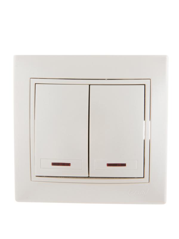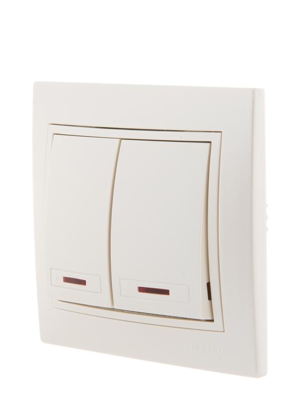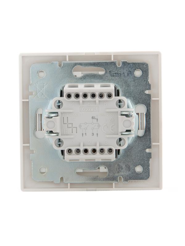 701-3030-112 | Выключатель 2-кл. СП Mira 10А IP20 с подсветкой со вставкой жемчуж./бел. перламутр. LEZARD