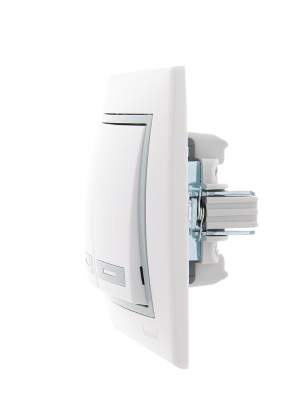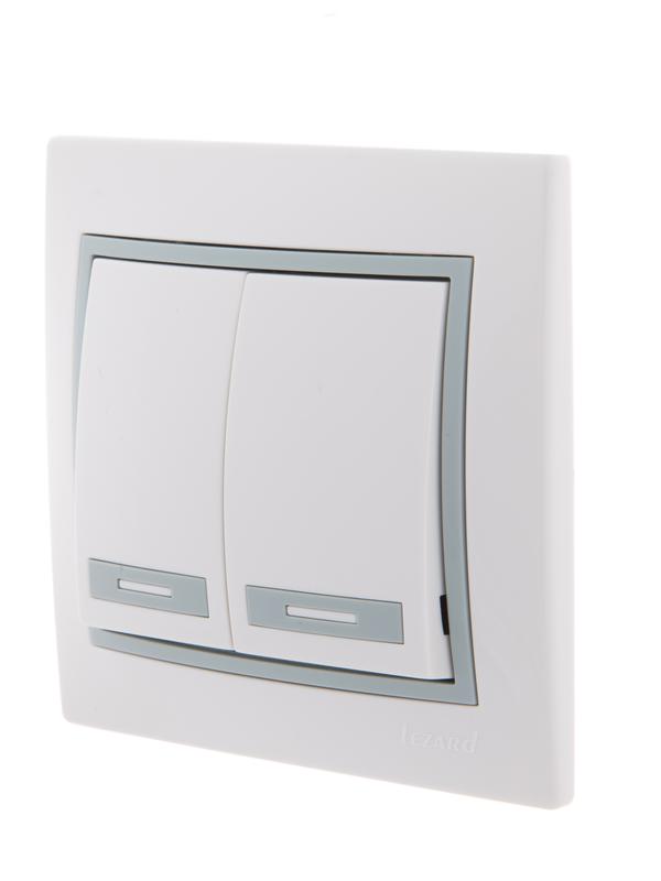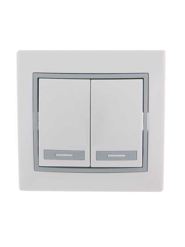 701-0215-101 | Выключатель 2-кл. СП Mira 10А IP20 с сер. вставкой бел. LEZARD
