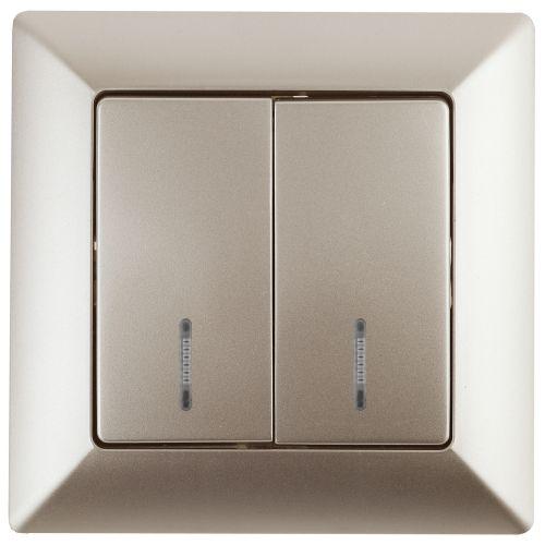 <td>Выключатель Intro Solo 4-105-04 двухклавишный с подсветкой, 10А-250В, IP20, СУ, шампань</td>