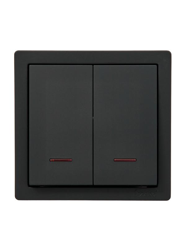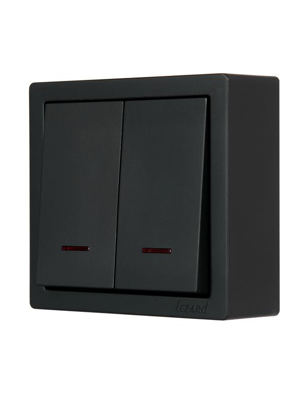 752-4200-112 | Выключатель 2-кл. ОП LETO с индикацией черн. бархат LEZARD