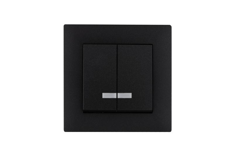 Выключатель 2-клав. с подсветкой Karea RIZZ STAR чер. Makel 88054023