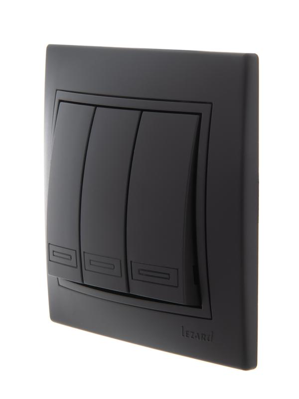 701-4242-109 | Выключатель 3-кл. 1п СП Mira 10А IP20 со вставкой черн. бархат LEZARD