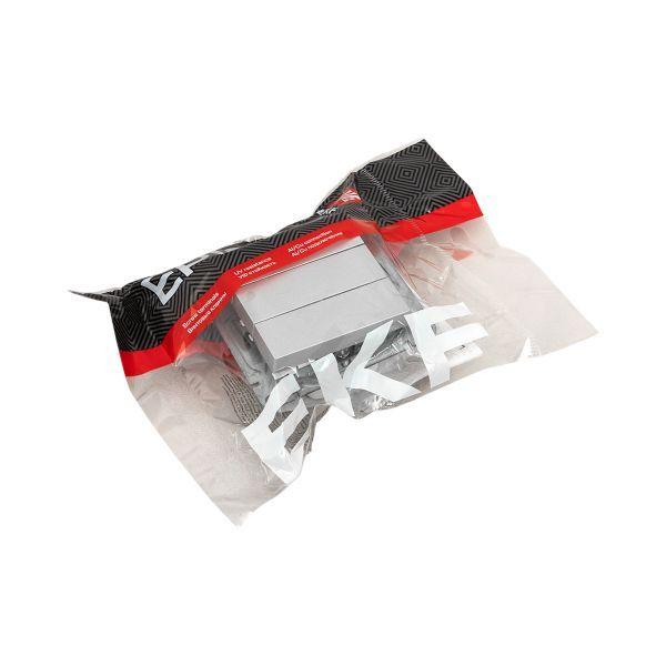 Выполнен из пластика, устойчивого к ультрафиолетовому излучению. Механизм совместим как с медной, так и с алюминиевой проводкой.