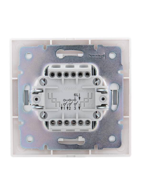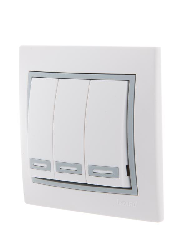 701-0215-109 | Выключатель 3-кл. СП Mira 10А IP20 с сер. вставкой бел. LEZARD