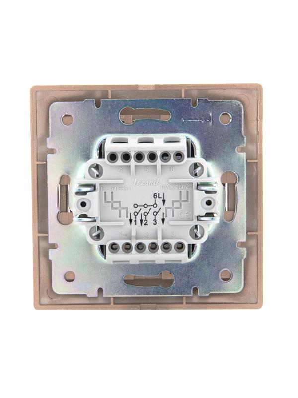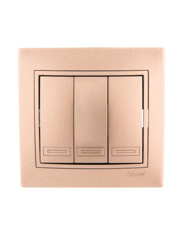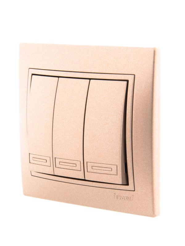 701-3131-109 | Выключатель 3-кл. СП Mira 10А со вставкой свет. корич. перламутр. LEZARD