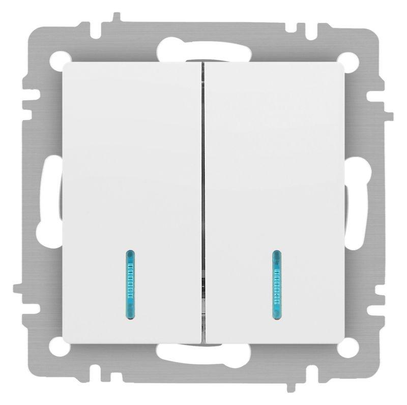 Выключатель Accent 6-105-01М двойн. с подсветкой 10А-250В IP20 СУ AL/CU бел. матов. Intro Б0063507