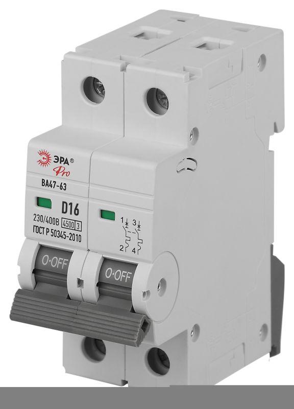 Б0059463 | Выключатель автоматический 2п D 16А 4.5кА ВА47-63 PRO ЭРА