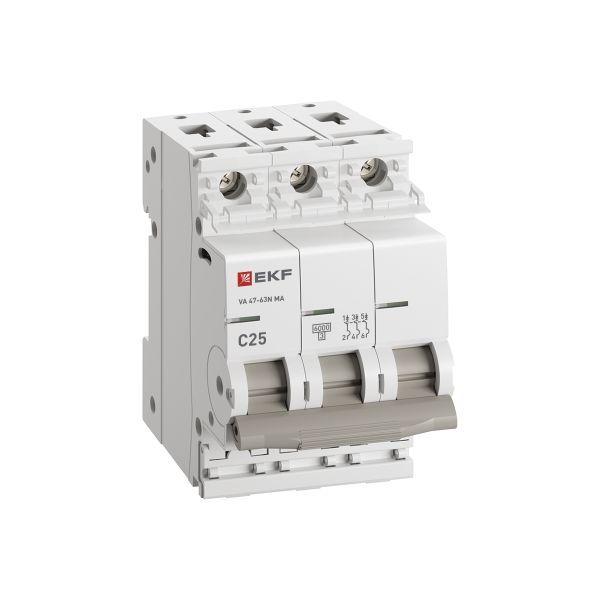 M63MA6325C | Выключатель автоматический 3п C 25А 6кА ВА 47-63N MA без теплового расцеп. PROxima EKF