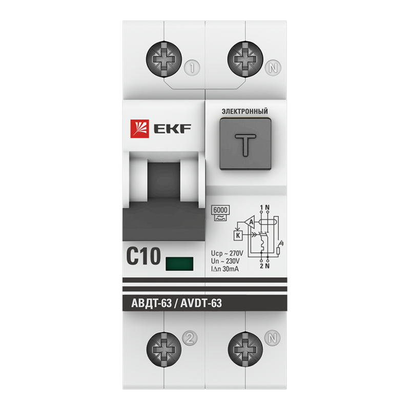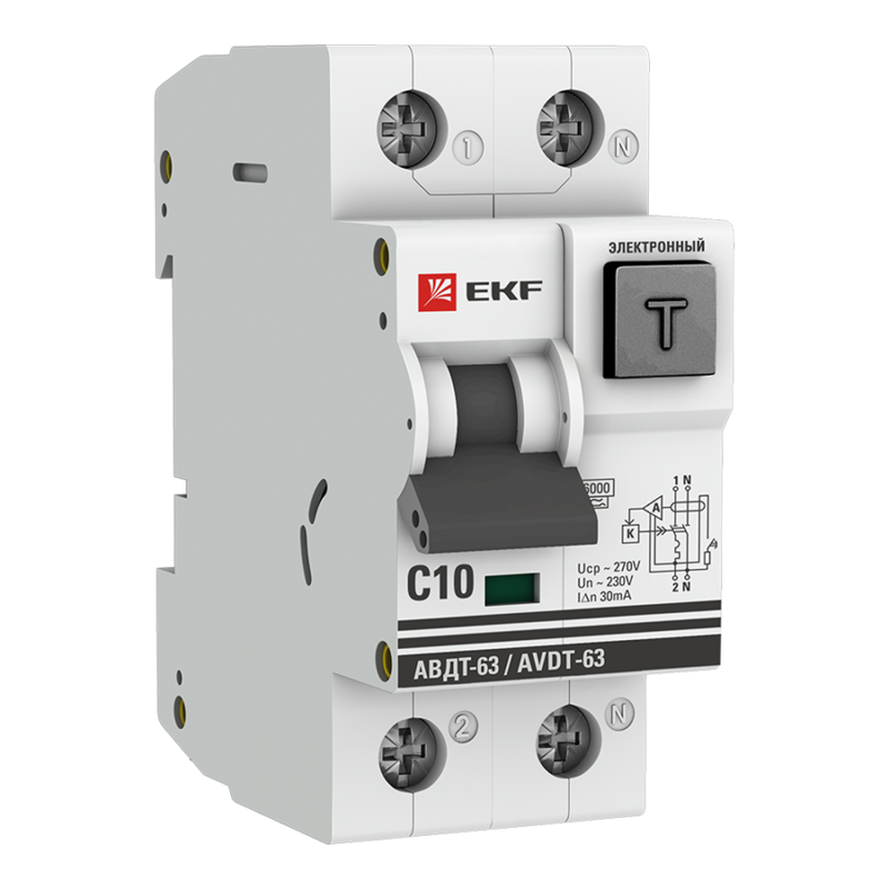 DA63-10-30e | Выключатель автоматический дифференциального тока 2п C 10А 30мА тип A 6кА АВДТ-63 2мод. электрон. PROxima EKF