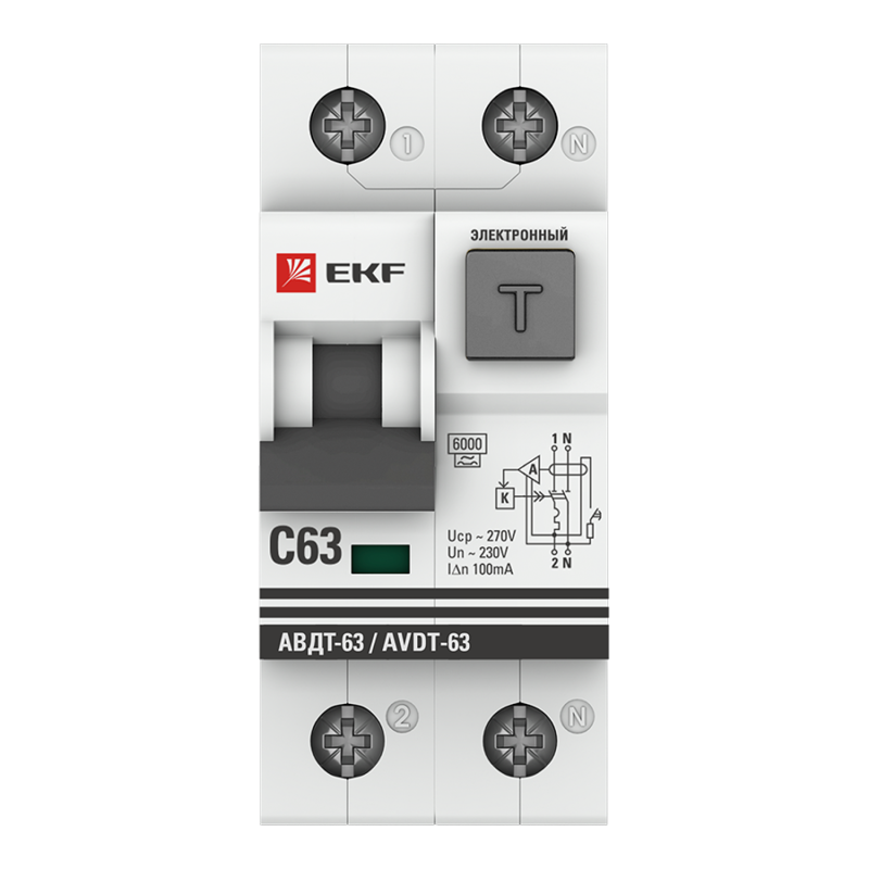 DA63-63-100e | Выключатель автоматический дифференциального тока 2п C 63А 100мА тип A 6кА АВДТ-63 2мод. электрон. PROxima EKF