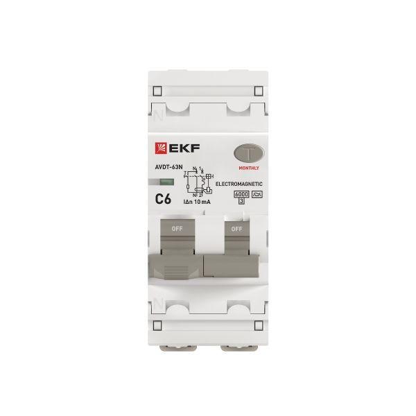 D63N26MA6C10 | Выключатель автоматический дифференциального тока 2п (1P+N) C 6А 10мА тип A 6кА АВДТ-63N (электромех.) PROxima EKF