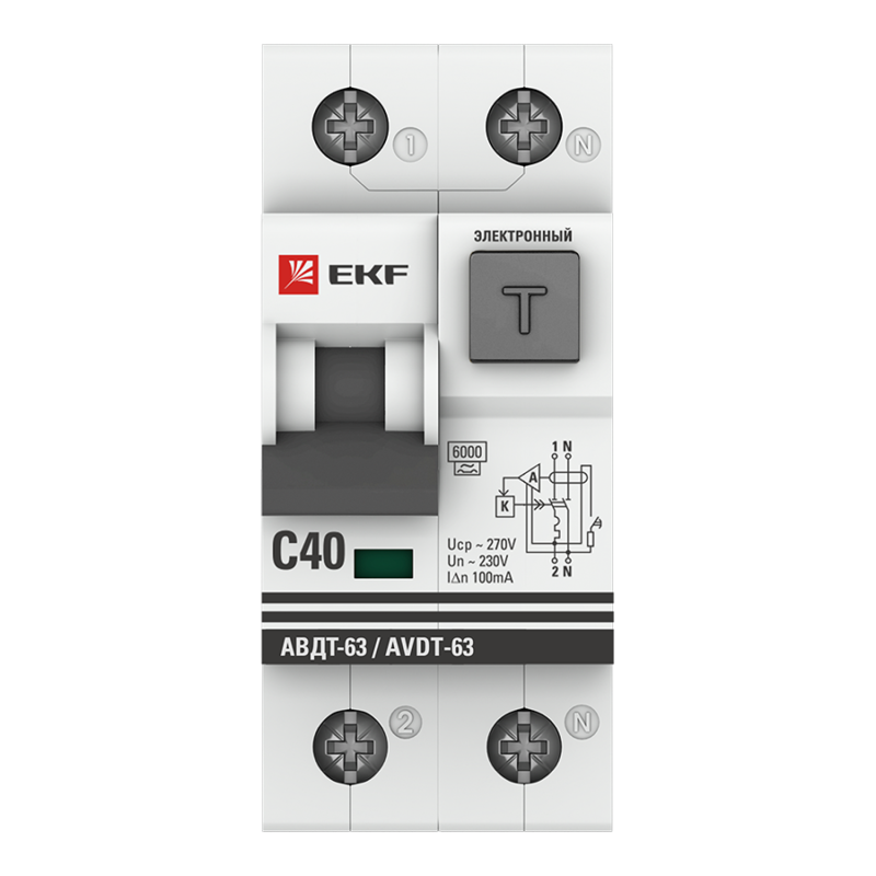 DA63-40-100e-AC | Выключатель автоматический дифференциального тока 40А 100мА тип AC 6кА АВДТ-63 электрон. PROxima EKF