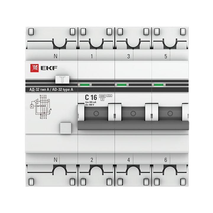 DA32-6-16-300-4P-a-pro | Выключатель автоматический дифференциального тока 4п (3P+N) C 16А 300мА тип A 6кА АД-32 защита 270В электрон. PROxima EKF