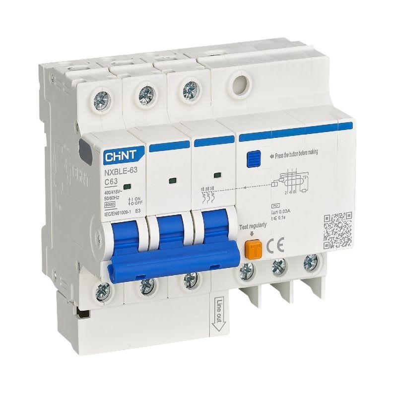 982113 | Выключатель автоматический дифференциального тока 4п (3P+N) C 20А 30мА тип AC 6кА NXBLE-63 (R) CHINT