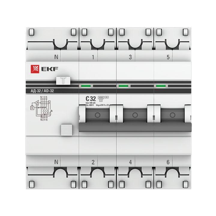 DA32-32-100-4P-pro | Выключатель автоматический дифференциального тока 4п (3P+N) C 32А 100мА тип AC 4.5кА АД-32 защита 270В электрон. PROxima EKF