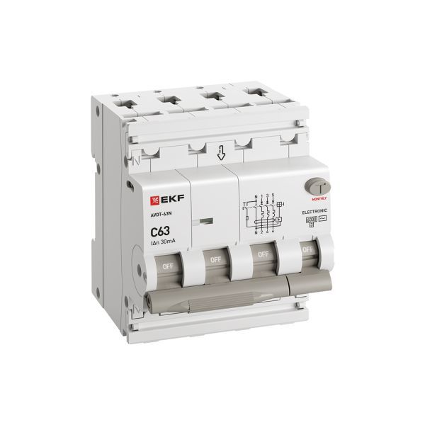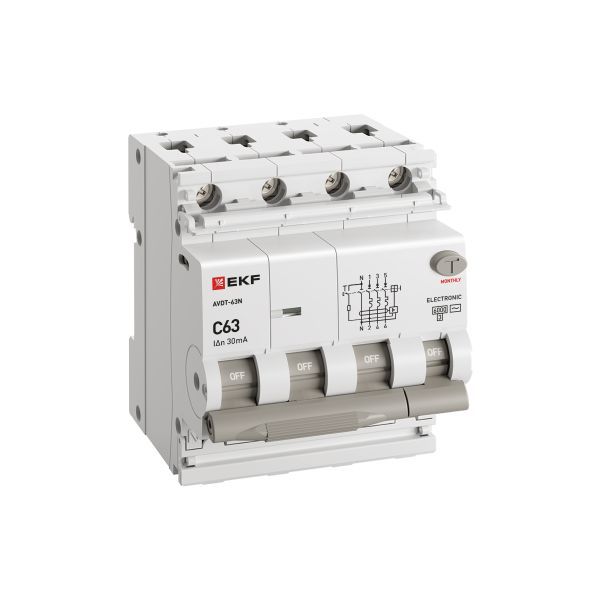 D63N46E63C30 | Выключатель автоматический дифференциального тока 4п (3P+N) C 63А 30мА тип AC 6кА АВДТ-63N электронный PROxima EKF