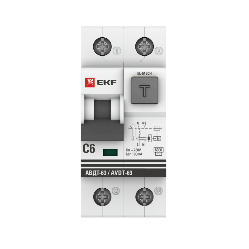 DA63-6-100em-AC | Выключатель автоматический дифференциального тока 6А 100мА тип AC 6кА АВДТ-63 электромех. PROxima EKF