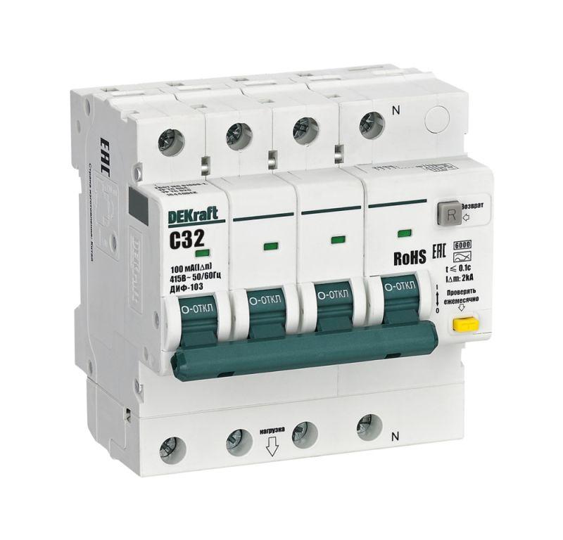 16440DEK | Выключатель автоматический дифференциального тока (АВДТ) 3P+N C 32А 100мА A ДИФ-103 6кА DEKraft