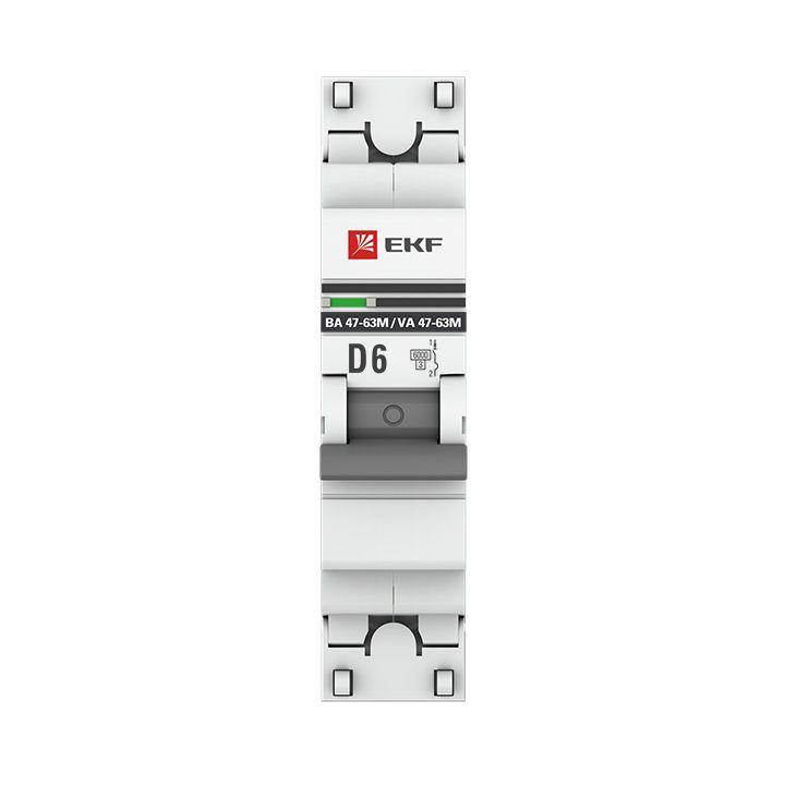 mcb4763m-6-1-6D-pro | Выключатель автоматический модульный 1п D 6А 6кА ВА 47-63M с одним магнит. расцеп. EKF