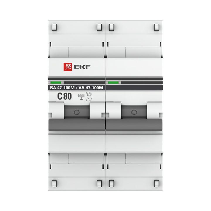mcb47100m-2-80C-pro | Выключатель автоматический модульный 2п C 80А 10кА ВА 47-100M электромагнит. расцеп. PROxima EKF