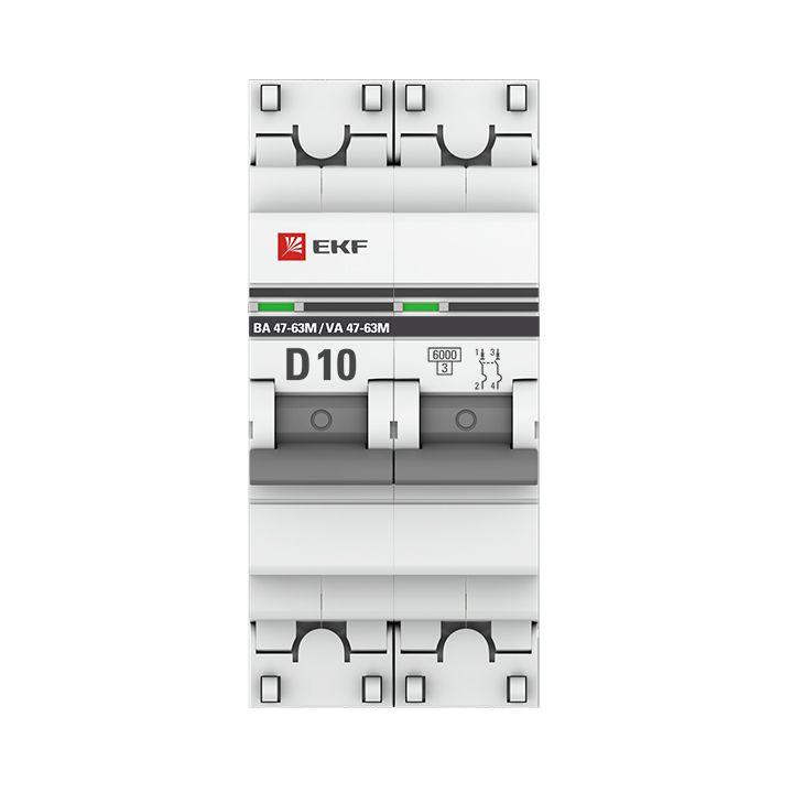 mcb4763m-6-2-10D-pro | Выключатель автоматический модульный 2п D 10А 6кА ВА 47-63M с одним магнит. расцеп. EKF