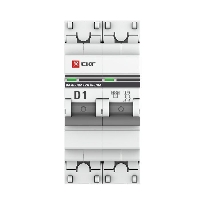 mcb4763m-6-2-1D-pro | Выключатель автоматический модульный 2п D 1А 6кА ВА 47-63M с одним магнит. расцеп. EKF