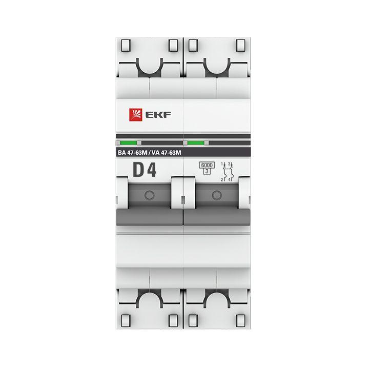 mcb4763m-6-2-4D-pro | Выключатель автоматический модульный 2п D 4А 6кА ВА 47-63M с одним магнит. расцеп. EKF