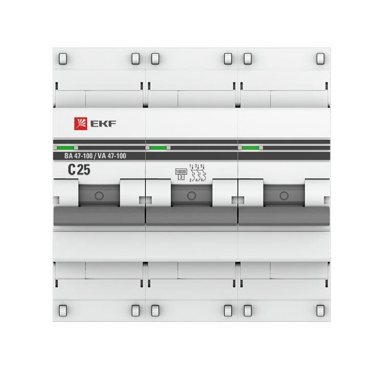 mcb47100m-3-25C-pro | Выключатель автоматический модульный 3п C 25А 10кА ВА 47-100M без теплового расцеп. PROxima EKF