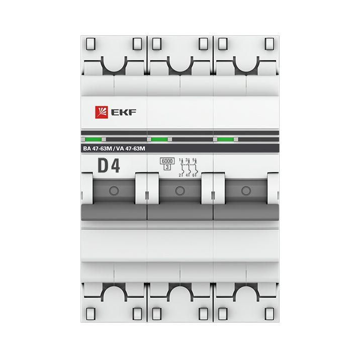 mcb4763m-6-3-4D-pro | Выключатель автоматический модульный 3п D 4А 6кА ВА 47-63M с одним магнит. расцеп. EKF