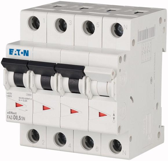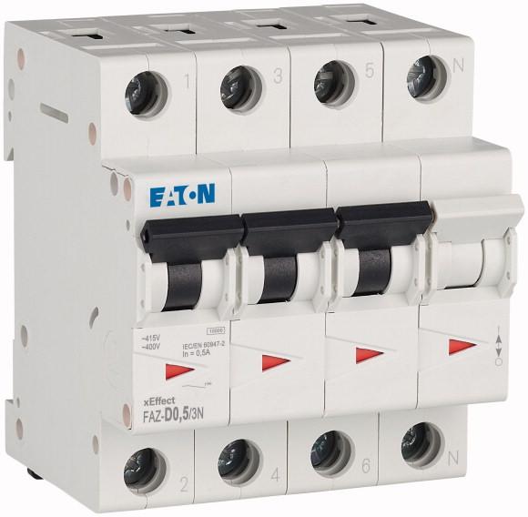 278982 | Выключатель автоматический модульный 4п (3P+N) D 0.5А 15кА FAZ-D0.5/3N EATON