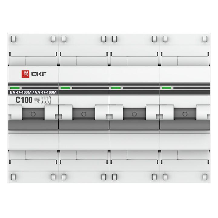mcb47100m-4-100C-pro | Выключатель автоматический модульный 4п C 100А 10кА ВА 47-100M электромагнит. расцеп. PROxima EKF