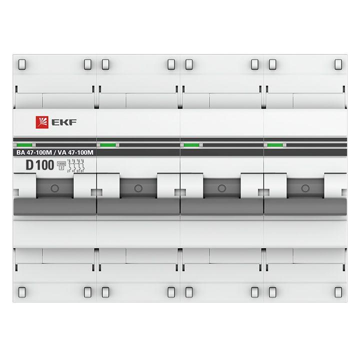 mcb47100m-4-100D-pro | Выключатель автоматический модульный 4п D 100А 10кА ВА 47-100M электромагнит. расцеп. PROxima EKF